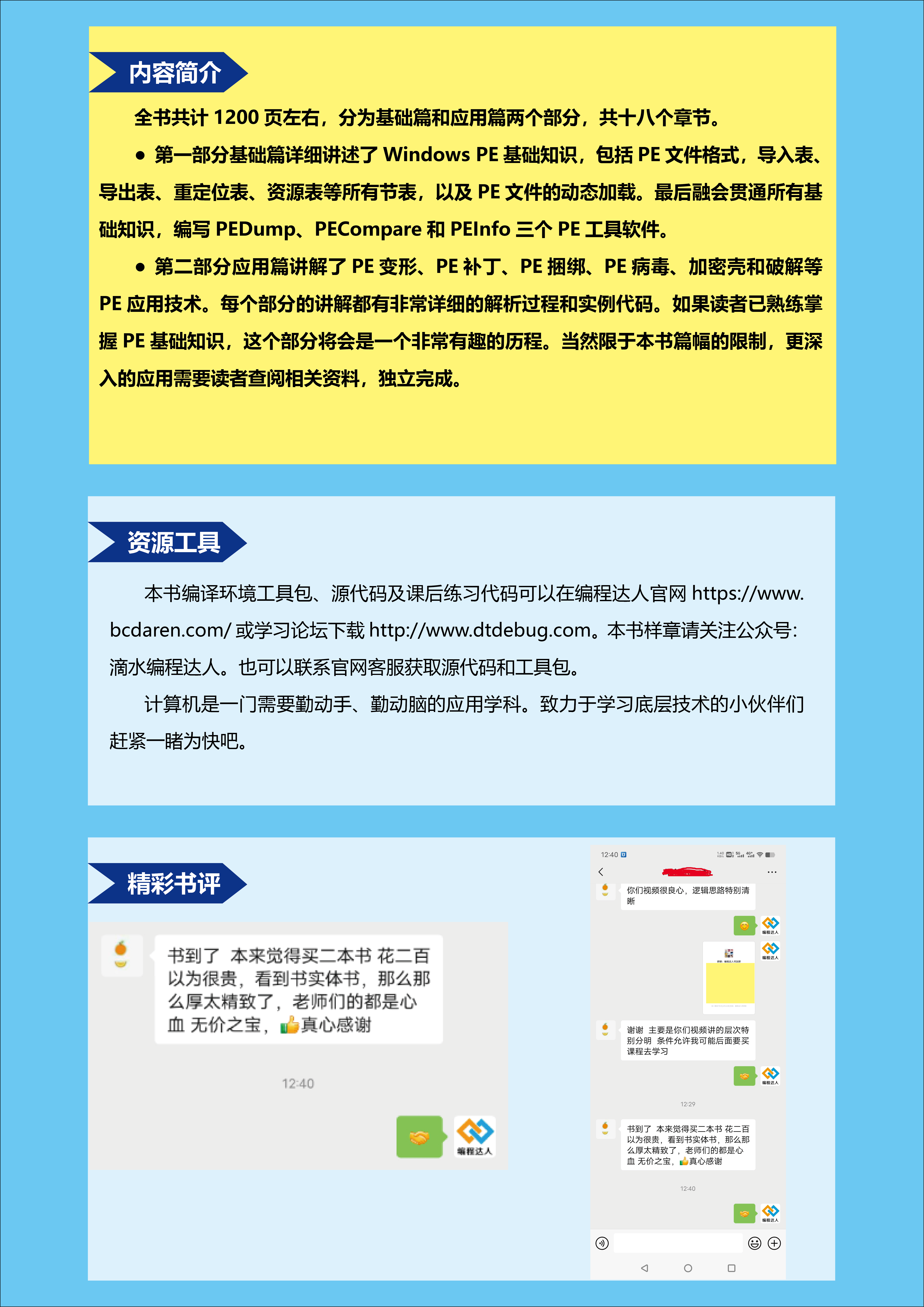 本书适合于想深入了解Windows PE格式的读者,以此可以深入理解Windows系统进程管理及运作机制。